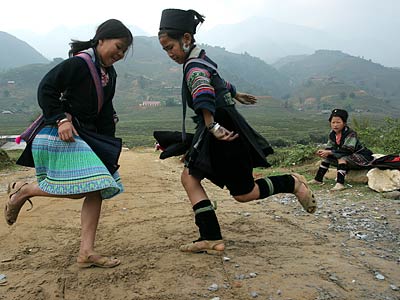 Some eight ethnic groups inhabit Lao Cai province: Hmong, Dao, White Thai, Giay, Tay, Muong, Hao and Xa Pho. The most prominent in town are the Red Dao, easily identified by the coin-dangling red headdresses and intricately embroidered waistcoats worn by the women, and the Hmong, distinguished by their somewhat less elaborately embroidered royal blue attire. Groups of ethnic Hmong youngsters and women can be seen hauling impossibly heavy, awkward baskets of wood, stakes, bamboo, bricks, mud and produce. Deep in the valleys surrounding Sapa, the Muong Hoa River sluices a wild, jagged course among Giay, Red Dao and White Thai settlements, their tiny dwellings poking out of the neon rice fields like diamonds on a putting green. One- to four-day treks are offered by a handful of outfitters. Guests sleep in tents or in the homes of villagers, their gear hauled by Hmong porters. Be warned: Despite what the local innkeepers will tell you, both the Hmong and the Dao really do not enjoy having their photographs taken unless they're paid for it. It's a certainty that any brochure you see of smiling, care-free ethnic hill people was shot under a Screen Actors Guild contract.